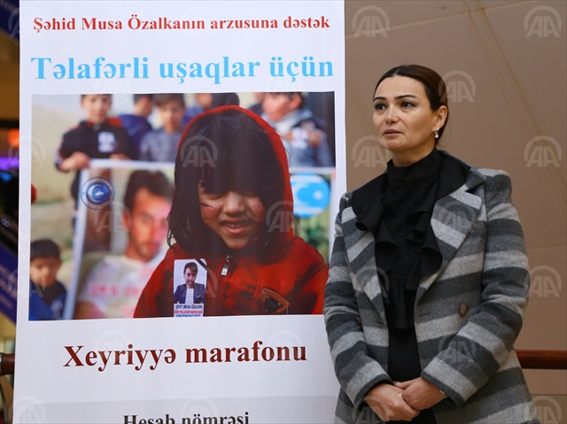 Bakü'de, Azerbaycanlı sivil toplum kuruluşlarının Zeytin Dalı Harekatı'nda şehit düşen Piyade Astsubay Üstçavuş Musa Özalkan'ın Irak'taki Türkmen şehri Telafer'de okul yapılması vasiyetinin yerine getirilmesine katkı sağlamak amacıyla başlattığı yardım kampanyasının tanıtımı yapıldı. Bir alışveriş merkezinde yapılan etkinliğe, MHP Antalya Milletvekili Ahmet Selim Yurdakul, Azerbaycanlı milletvekilleri Ganire Paşayeva ve Melahat İbrahimkızı, Türkiye-Azerbaycan İşadamları ve Sanayiciler Birliği (TÜİB) Başkanı Hüseyin Büyükfırat, STK temsilcileri ve gaziler katıldı.