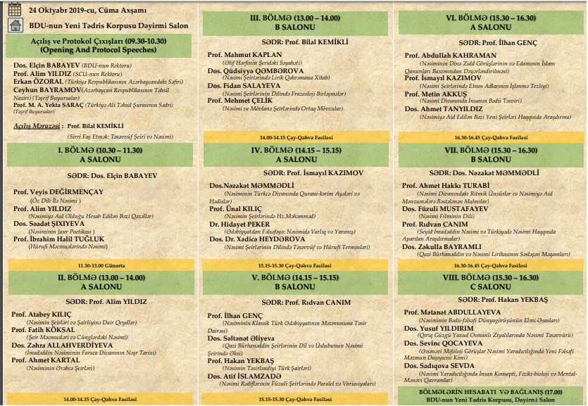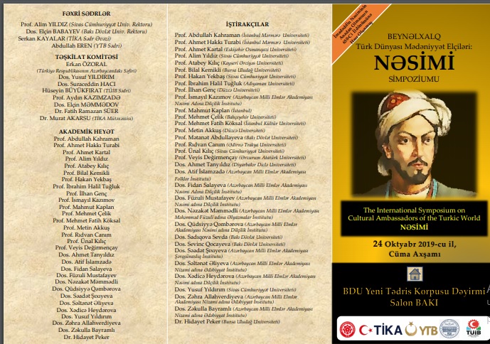 24.10.2019 tarixində Bakı Dövlət Üniversitetinin Yeni Tədris Korpusunda Sivas Cumhuriyət Üniversiteti ilə Bakı Dövlət Üniversitetinin birgə təşkilatçılığı ilə Bakıda "Beynəlxalq Türk Dünyası Mədəniyyət Elçiləri: Nəsimi Simpoziumu" adlı tədbir keçiriləcək.