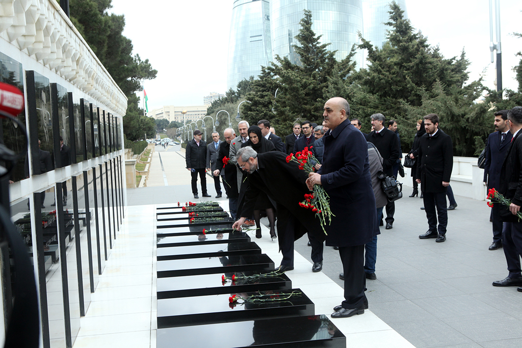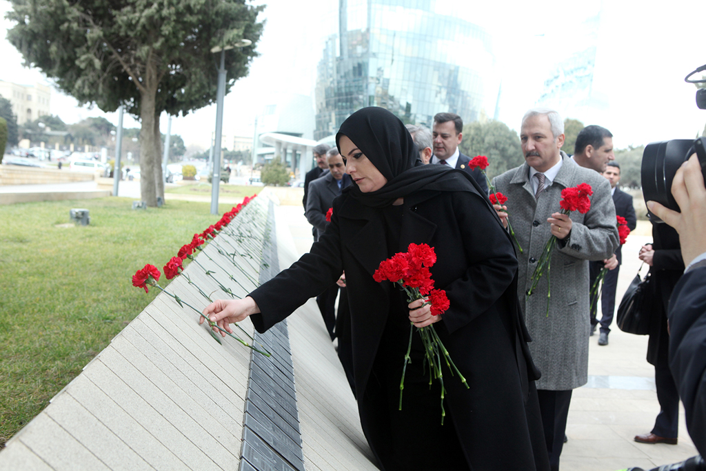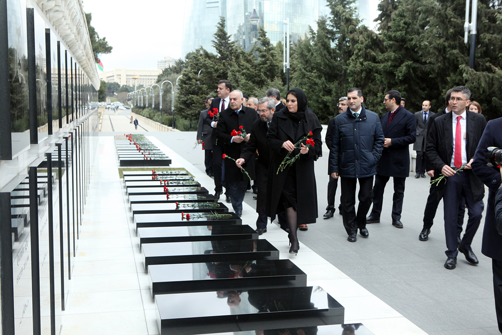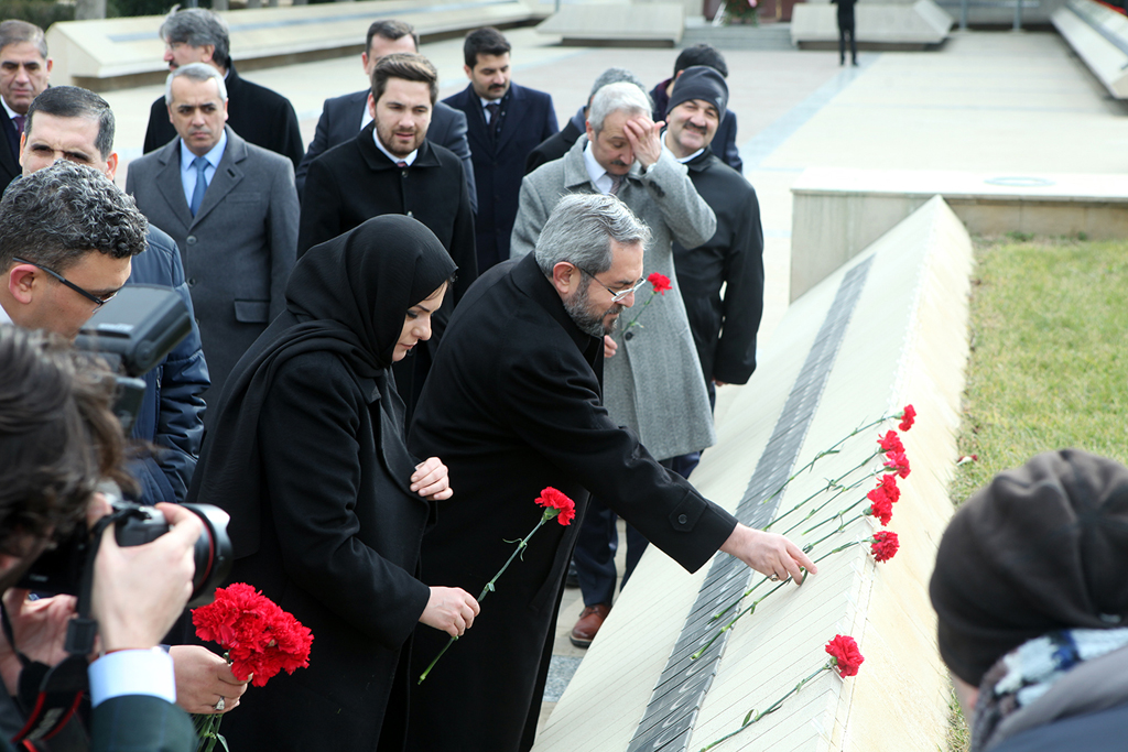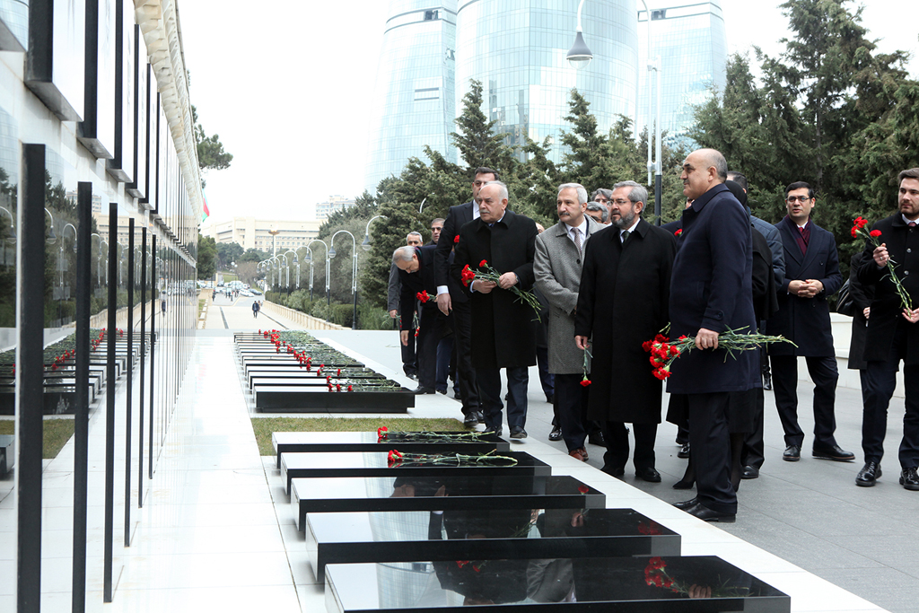 Şəhidlər xiyabanına gələn nümayəndə heyəti Azərbaycanın müstəqilliyi və ərazi bütövlüyü uğrunda şəhid olan qəhrəman Vətən övladlarının xatirəsinə ehtiramlarını bildirib, məzarları üzərinə gül-çiçək dəstələri, “Əbədi məşəl” abidəsinin önünə əklil qoyublar. Daha sonra Türk Şəhidliyi abidəsi ziyarət olunub və abidə önünə əklil qoyulub.